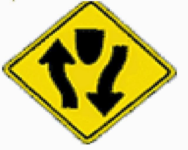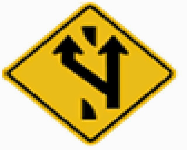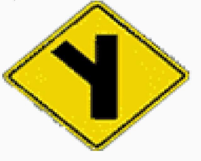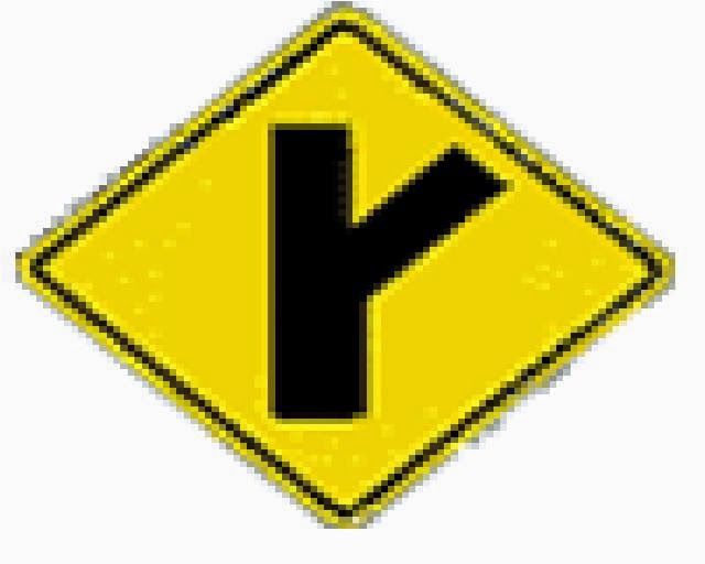 ก. ขับรถให้ช้าลง และเพิ่มความระมัดระวัง ทางข้างหน้ามีทางโทแยกไปทางซ้าย