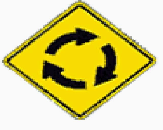 ก. ทางข้างหน้าจะเป็นทางแยก มีวงเวียน