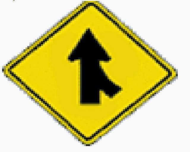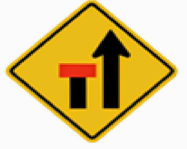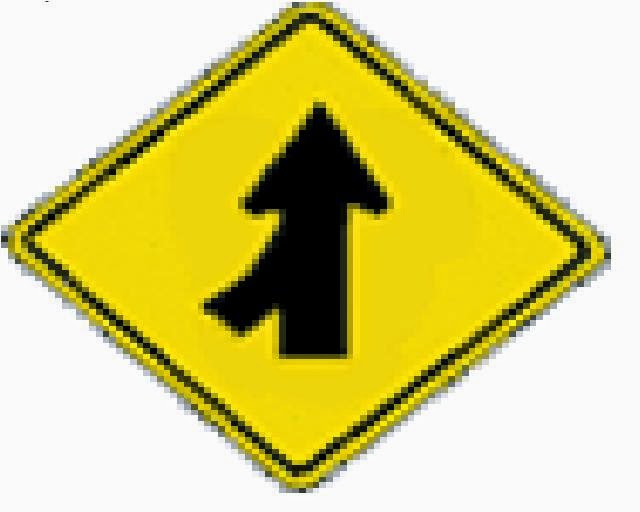 ก. ขับรถให้ช้าลง และชิดซ้าย เพิ่มความระมัดระวัง ทางร่วมด้านขวา