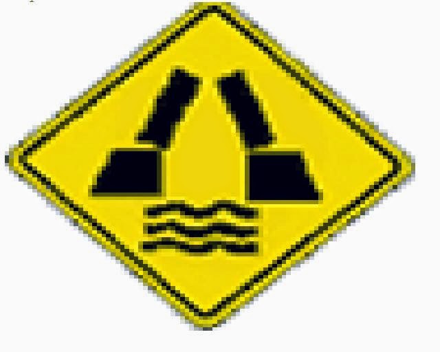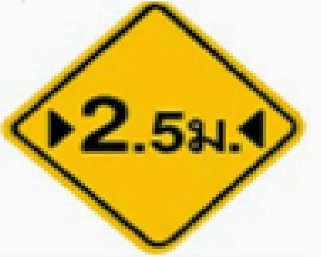 ก. ขับรถอย่างรวดเร็ว เพิ่มความระมัดระวัง ทางข้างหน้ามีสะพานแคบ