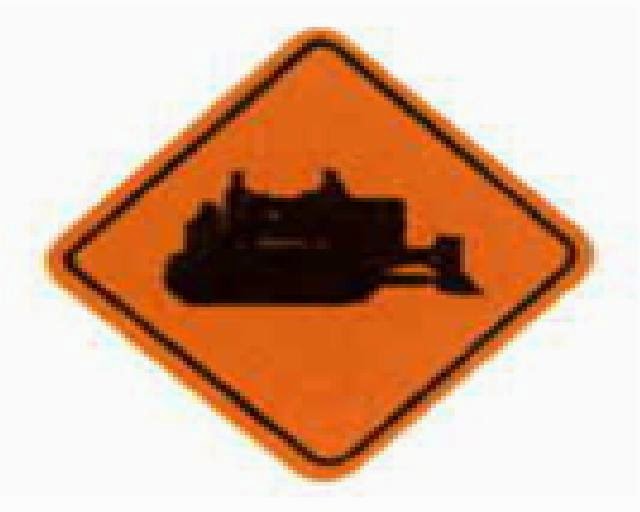 ค. ให้ขับรถช้าลง และระมัดระวัง เครื่องจักรกำลังทำงาน