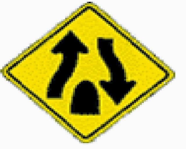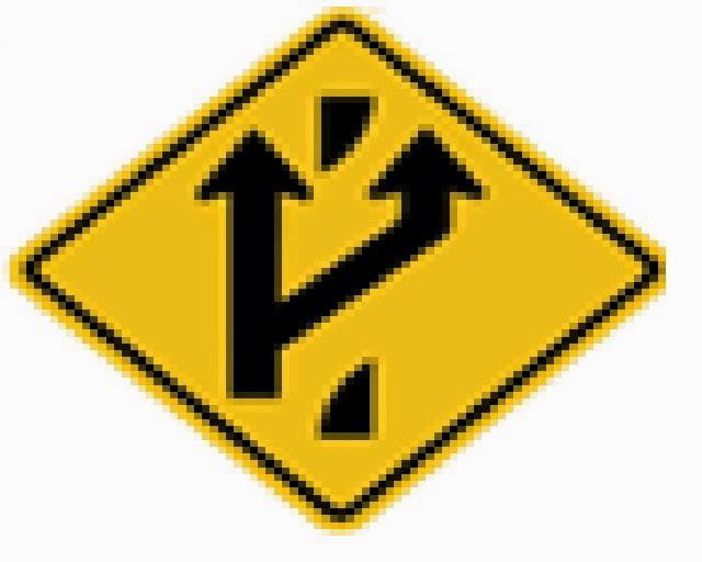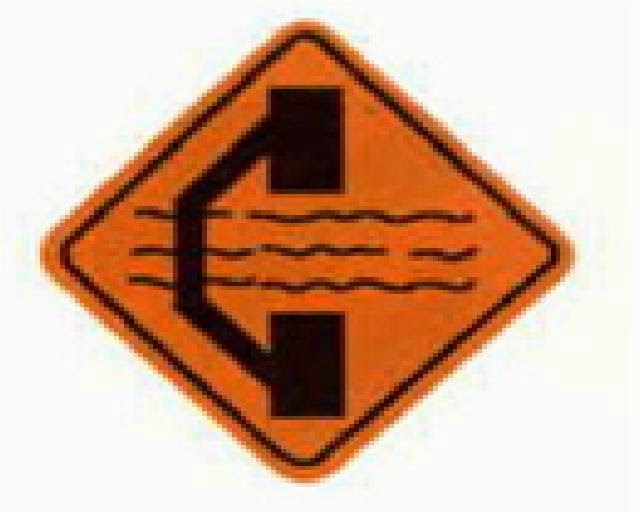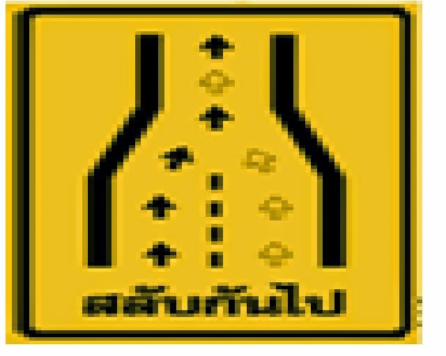 ข. ขับรถให้ช้าลง และเพิ่มความระมัดระวัง ทางข้างหน้าต้องใช้ทางเบี่ยงด้านขวา