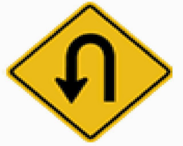 ข. ทางข้างหน้าโค้งกลับเริ่มขวา