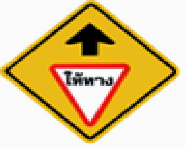 ข. ให้ขับรถด้วยความระมัดระวัง ทางข้างหน้าเป็นทางโทตัดกับทางโทรูปตัวที