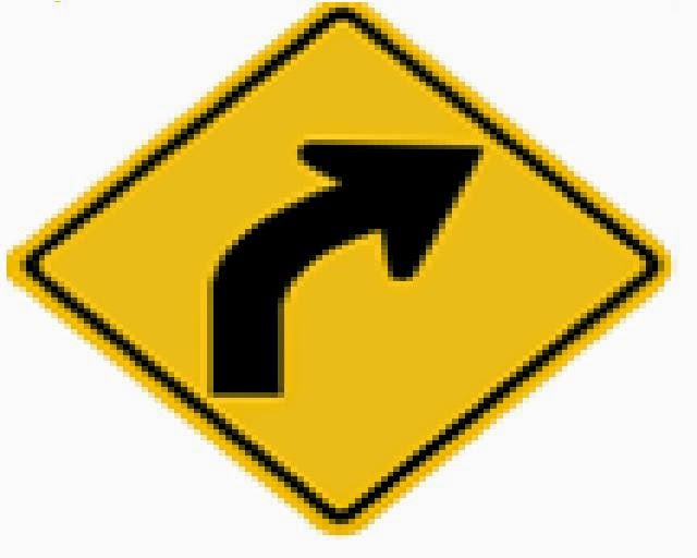 ง. ให้ขับรถช้าลง ทางข้างหน้าเป็นทางโค้งไปทางขวา