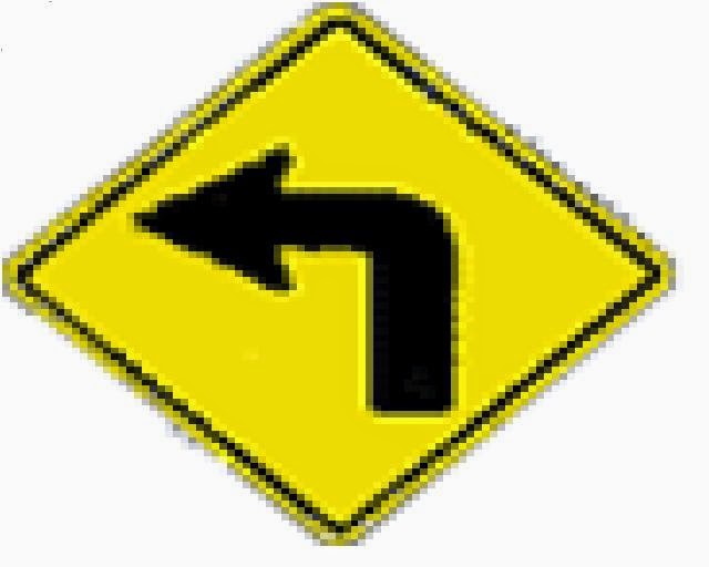 ข. ให้ขับรถช้าลง ทางข้างหน้าเป็นทางโค้งไปทางซ้าย