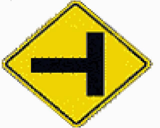 ก. ขับรถให้ช้าลง และเพิ่มความระมัดระวัง ทางข้างหน้ามีทางโทแยกไปทางขวา